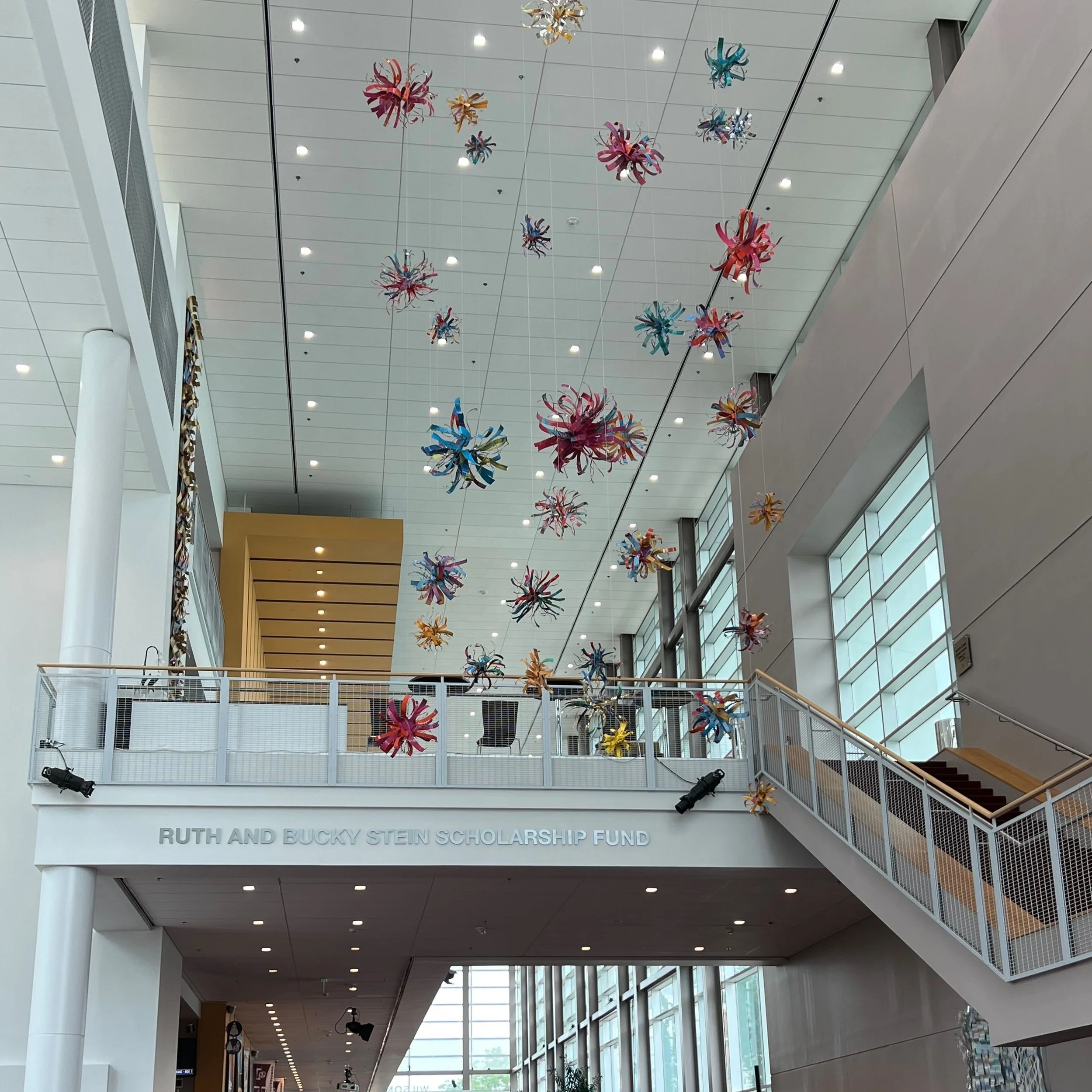 Drone Photos of the Dorothy Gillespie Hanging Starburst Installation in the Wilson Center in Wilmington NC
